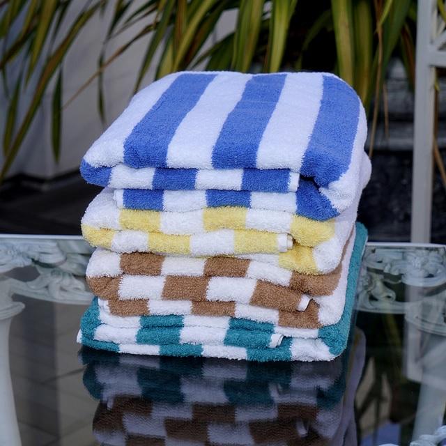 Blue Stripes Printed 100% Organic Cotton Gots Certificate Terry Super-dry Lightweight Custom Logo Print Beach Towel With Tassels