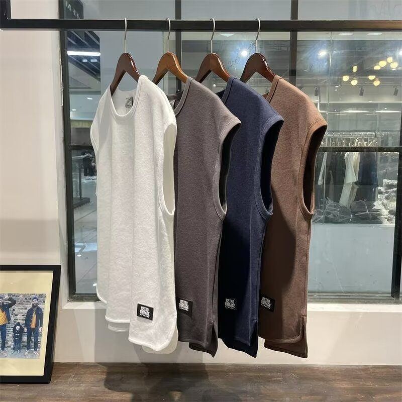 Blue Summer Retro Streetwear Men's Vest Shirt Men's Sporty Sleeveless Tank Top Loose Fit Gym Workout Men's Sleeveless T-Shirt