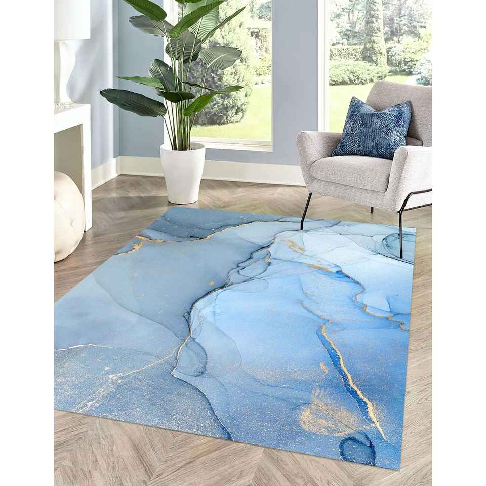 Blue Tones Marble Rugs, Shimmery Rugs, Printed Rug,Luxury Velvet Rug