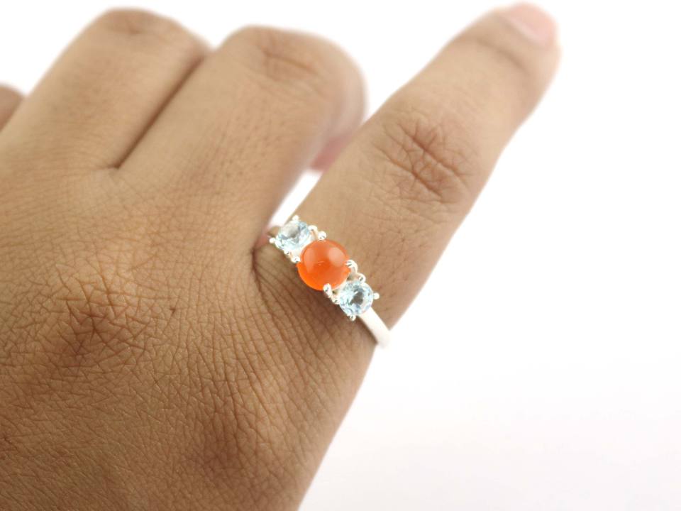 Blue Topaz 925 Sterling Silver with Carnelian Gemstone Prong Set Stackable Dainty Ring For Women