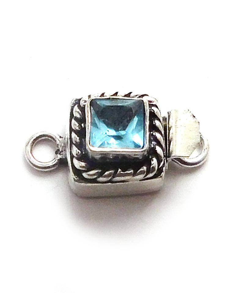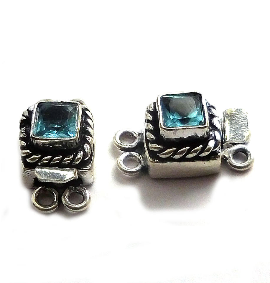 Antique Silver & 18K Gold Plated Blue Topaz Gemstone Box Clasp 19X10X8MM Square Shape for 1-3 Strand Jewelry Making B809