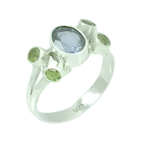 Blue Topaz, Peridot Gemstone Ring 925 Sterling Silver Ring Trendy Style Silver Plated Ring Fashionable Ring for Women, Men