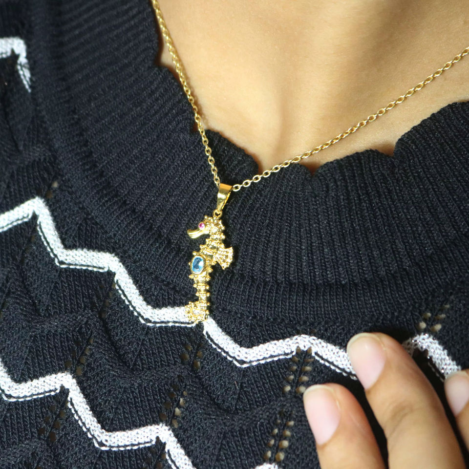 Blue Topaz Seahorse Pendant 925 Sterling Silver Pendant December Birthstone Jewelry Gift