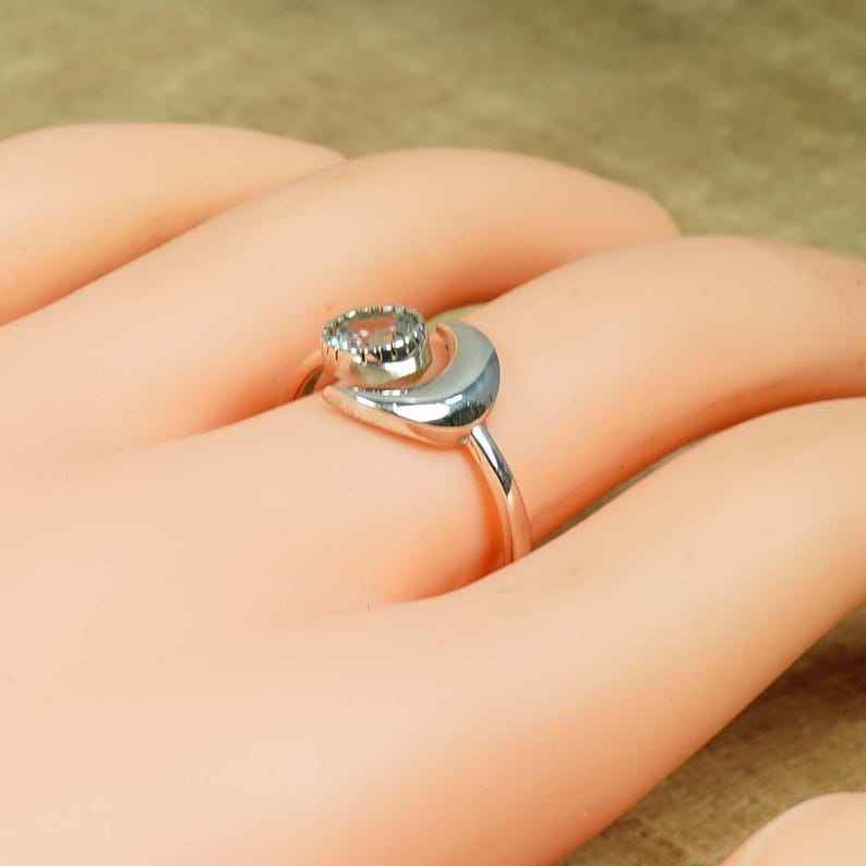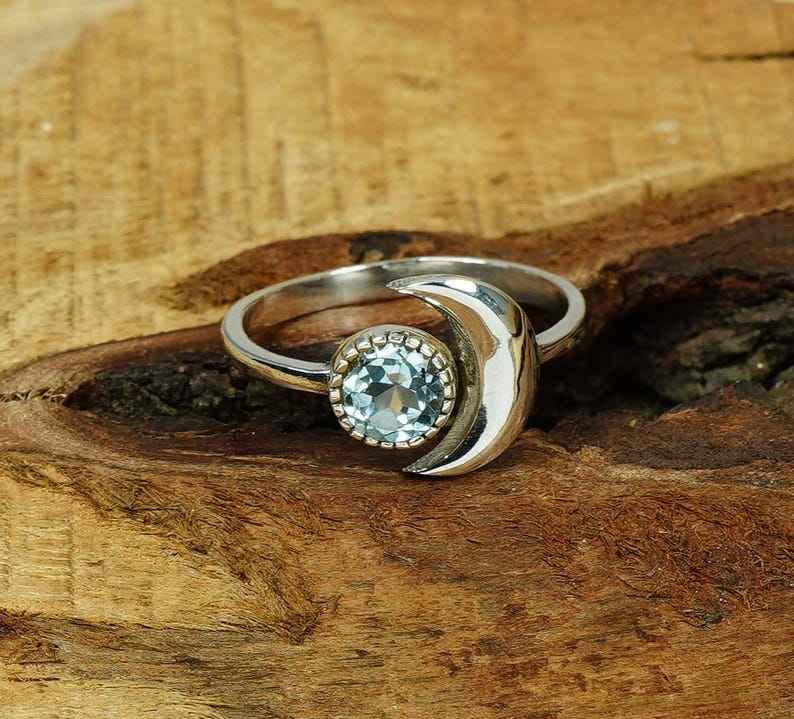 Blue Topaz Sterling Silver Ring Elegant Round Gemstone Jewelry November Birthstone Ring Handmade Gift For Women