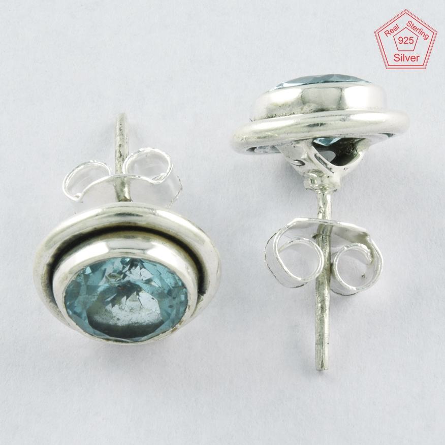 Blue Topaz Stone 925 Sterling Silver Cute Wedding Stud Earrings