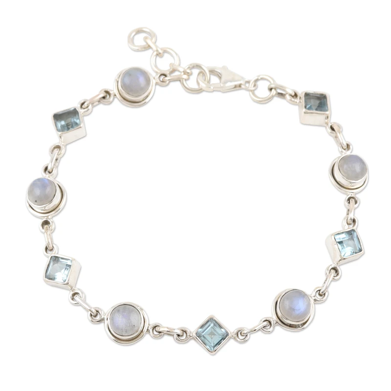 Blue Topaz and Rainbow Moonstone Bracelet Chain Link Bracelet Boho Dainty Jewelry Wholesale Bulk Price Fashion Jewelry Handmade