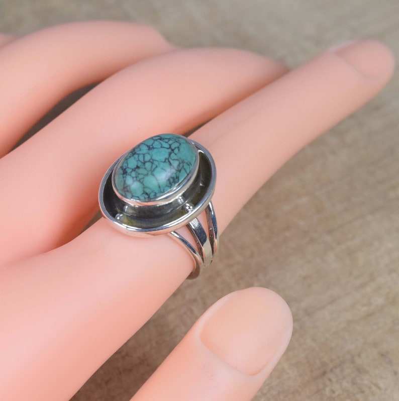 Blue Turquoise 925 Sterling Silver Oval Gemstone Ring Gift for her