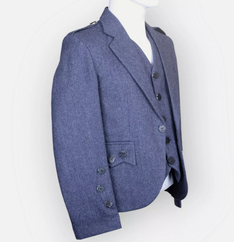 Blue Tweed Argyle Kilt Jacket With Vest Mens Tweed Wool Wedding Argyle Jacket Handmade Wedding Jacket For Men