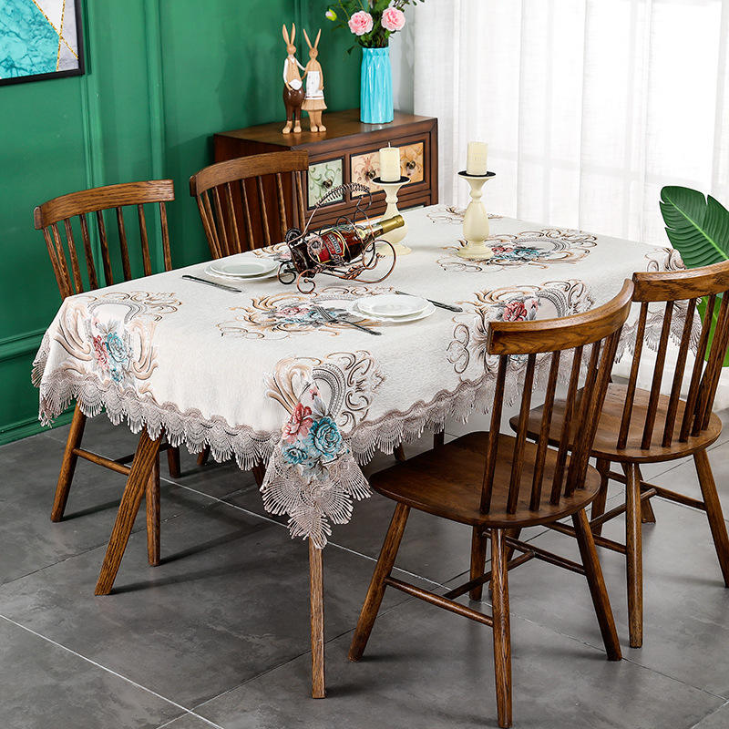 Blue Waterproof Oilproof Disposable Customizable Polyester Cotton Woven Tablecloth for Home Outdoor Wedding Party Occasions