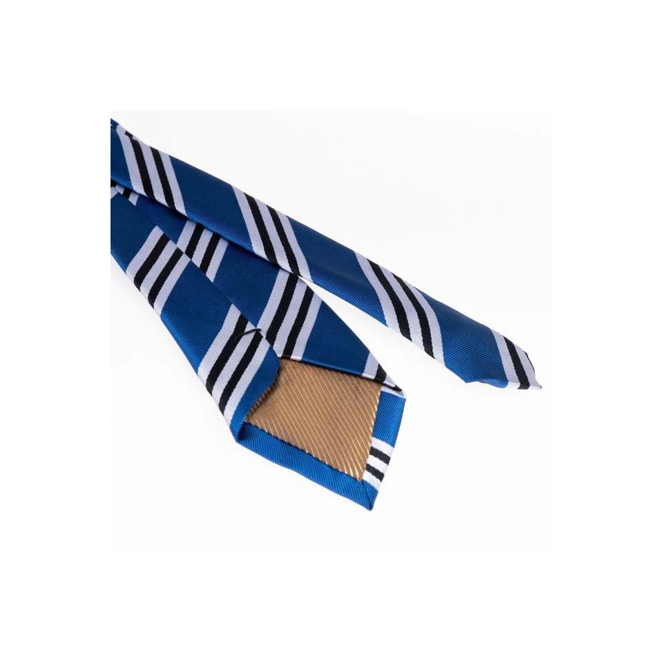 Blue White Black Striped Italian Tie and Handkerchief Set