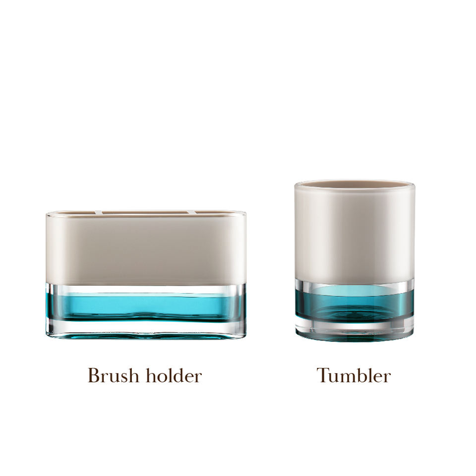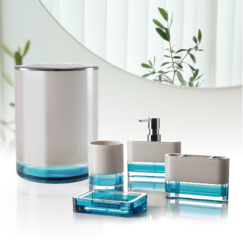 Blue White Float Plastic Luxury Bathroom Accessory Set Soap Dish Toothbrush Holder Tumbler Soap Dispenser Wastecan Bin Trash Can