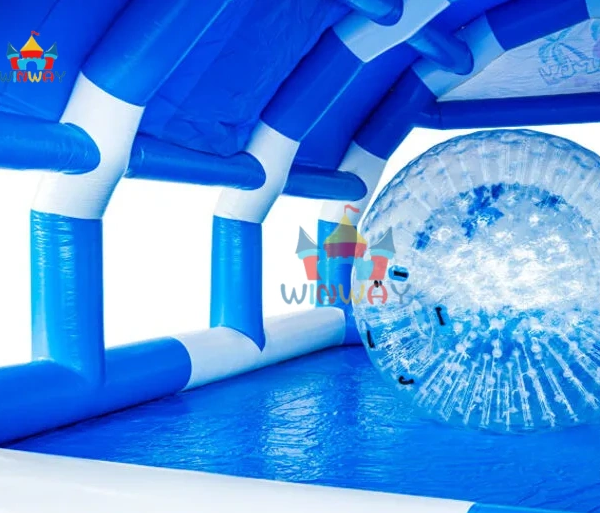 Blue White Striped Inflatable Shade Play Structure Large Outdoor Amusement Equipment Event Tent with Piscine for Summer Fun
