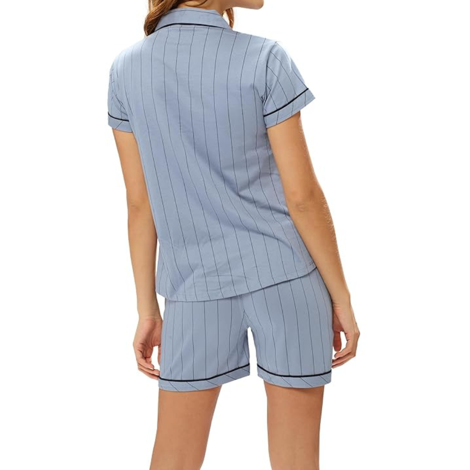 Blue With Long Strips Women's Star Printed Night Shirt with Shorts Night Suit Set of Top & Shorts Cotton Modal Pajama Set Cozy