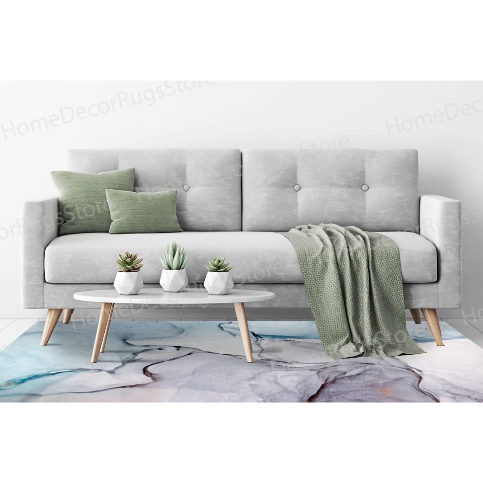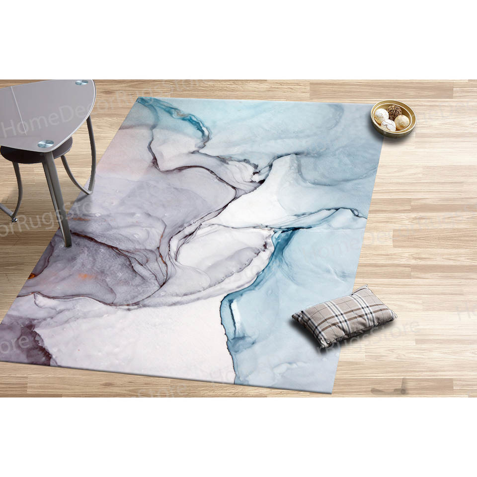 Blue and Purple Marble Rugs, Modern Printed Rug for Bedroom,With Pile Soft Rug