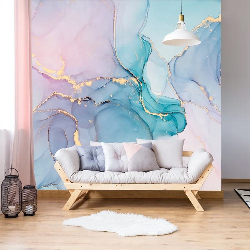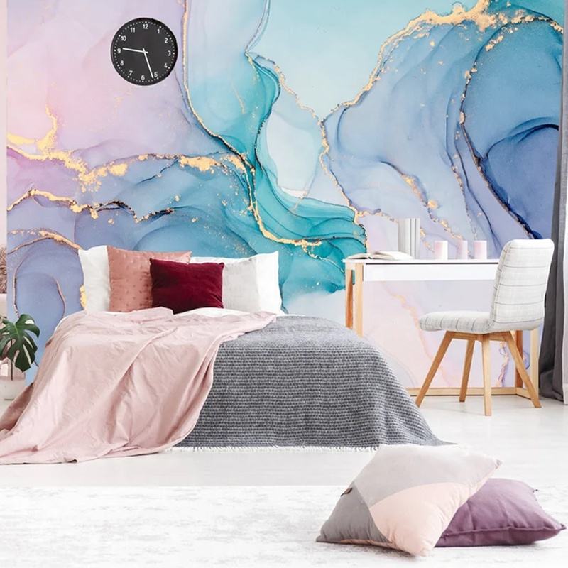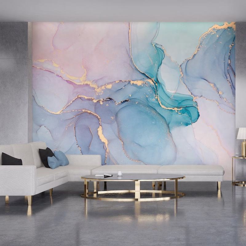 Blue and Purple Marble Stone Mural Watercolor Abstract Wallpaper