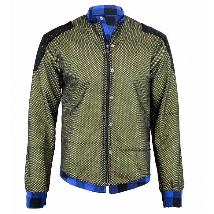 Blue and black plaid flannel shirt for workwear with CE-approved safety gear shirt for mens and protective lining