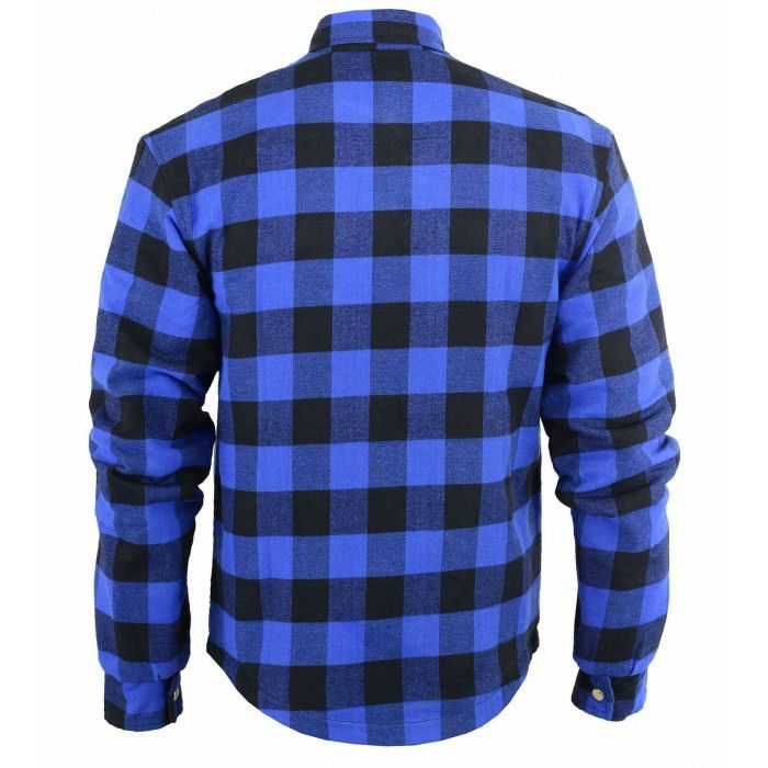Mens Blue Black Plaid Heavyweight Flannel Shirt Button Down Kevlar Shirt Protection Armored Riding Jacket