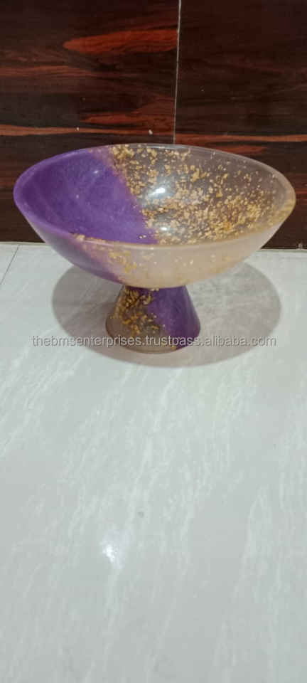 Blue and clear resin jointed double colour resin bowl with base for multi use