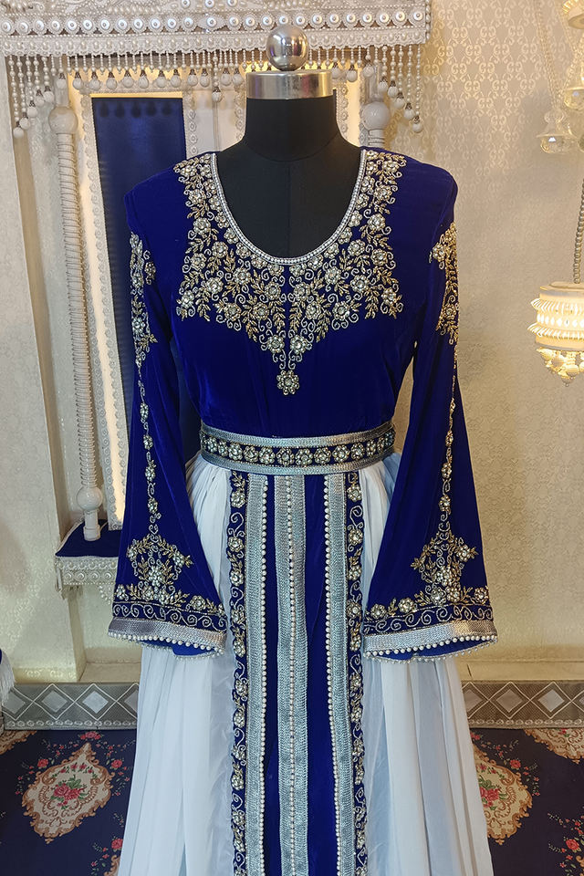 Blue and white wedding arabic caftan