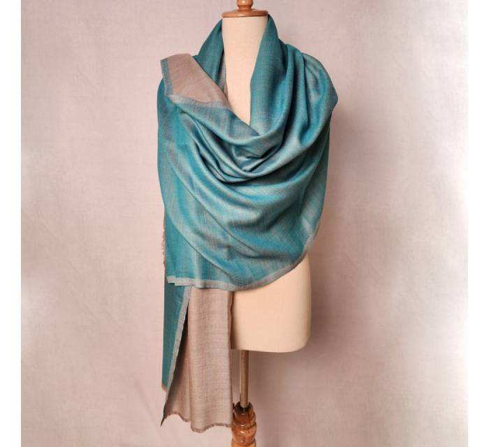 Blue Color Elegant Floral Kashmiri Designs Machine Aari Embroidery 100% Wool Long Scarf Shawl Winter Wear Accessory Traditional