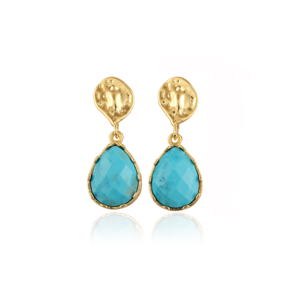 Blue pear drop earrings 18k gold plated turquoise earring women gemstone statement jewelry hammered stud drop earrings for her
