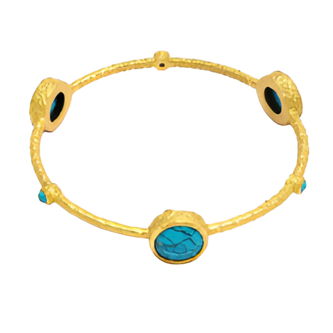 Blue Turquoise Gemstone Freshwater Pearl Oval Cut Gold Plated 925 Sterling Silver Trendy Bangle for Women Wedding Anniversary