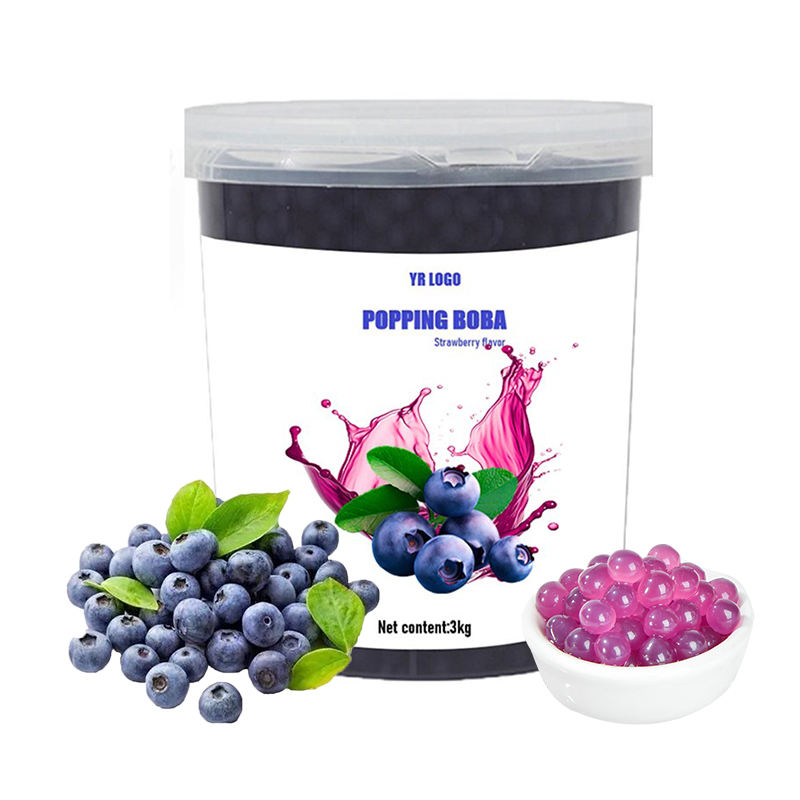 Blueberry Popping Boba Pearls for Bubble Tea Topping Premium Beverage Toppings in Bottle with Sugar Additives