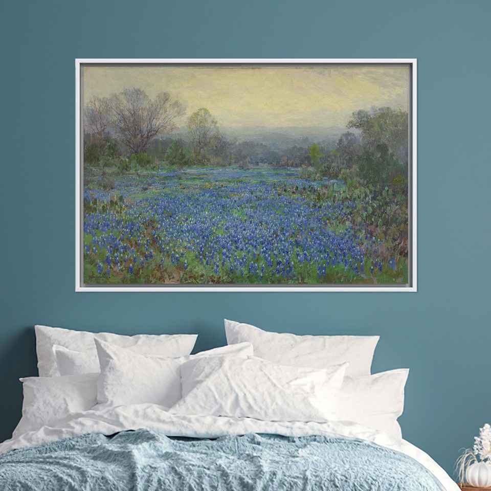 Bluebonnet Field Canvas Wall Art: Printed Wildflower Meadow Decor,1P:White Framed