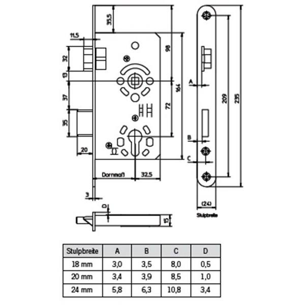 AGA 182 and 582 Steel Door Lock Central Lock 2-Point Design Polished Finish