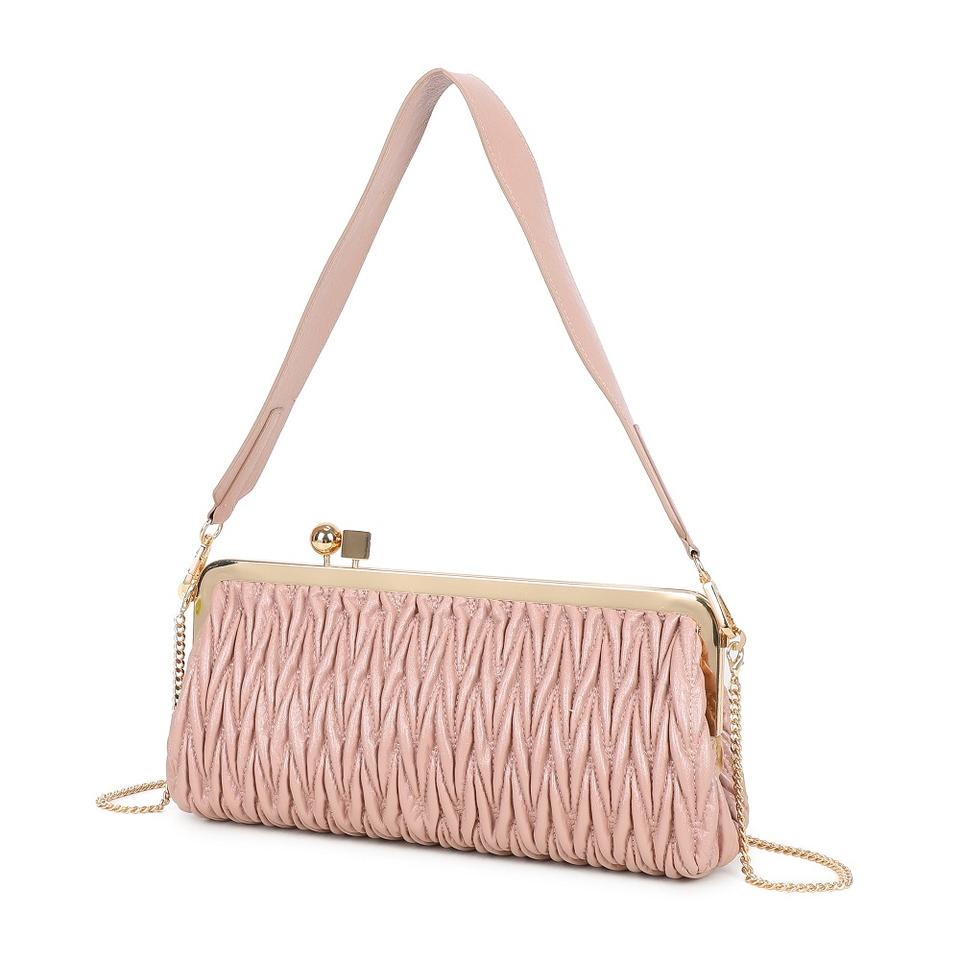 Blush Pink Ruched Kiss-Lock Clutch Bag Fashion Medium Capacity Chain Shoulder Bag for Party & Daily Use