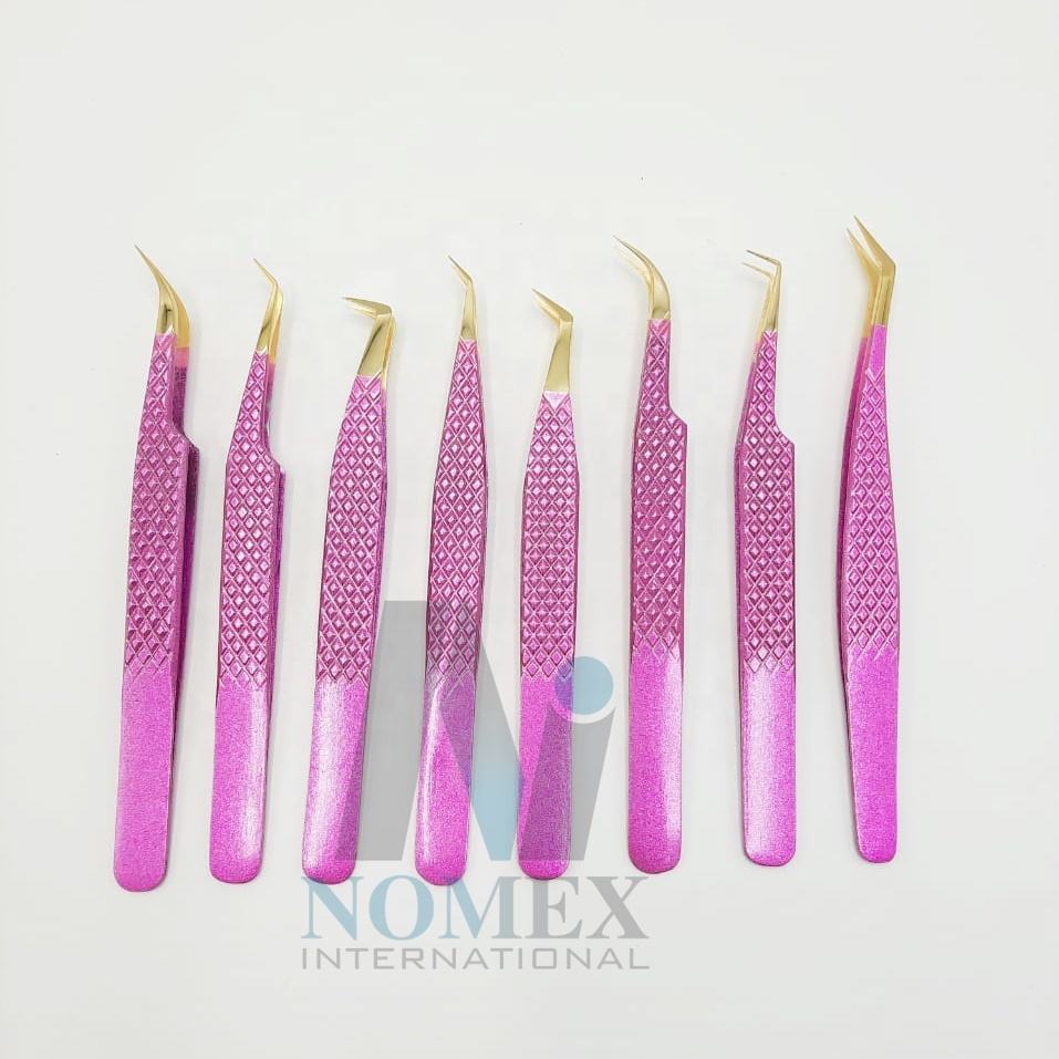 Blush Pink with Gold Plated Point Tweezers for Eyelash Extension Dolphin Style Lash Lifting Tweezer Sustainable at Low Cost