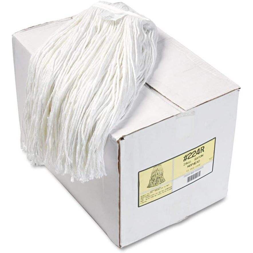 Boardwalk 224RCT Premium Cut-End Wet Mop Heads 24oz Rayon White-High Quality Rectangular Plastic Basket Manual Wrapping Case 12