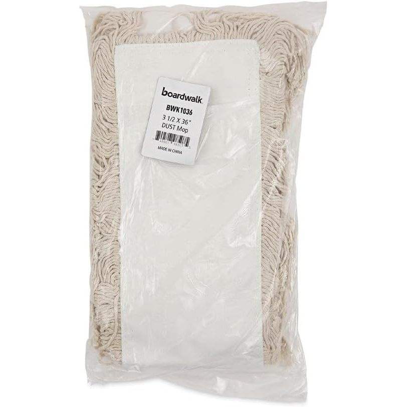 Boardwalk 36 In. X 3 In. White Cotton Dust Mop Head with 360 Degree Rotating Plastic Basket and Rectangle Design