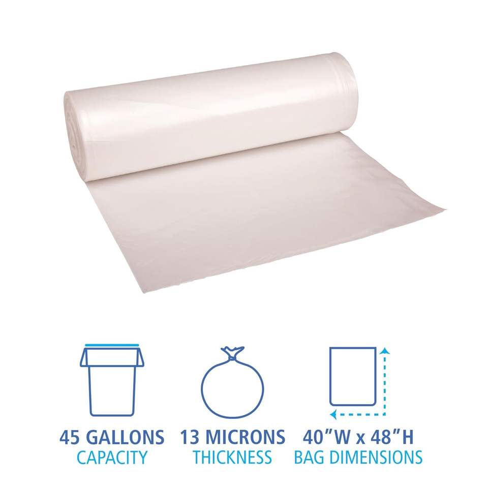 Boardwalk 45 gal 13 Microns Industrial Can Liners Coreless Rolls 40 X 48 Natural 25 Bags/roll 10pcs-High Density Plastic Bags