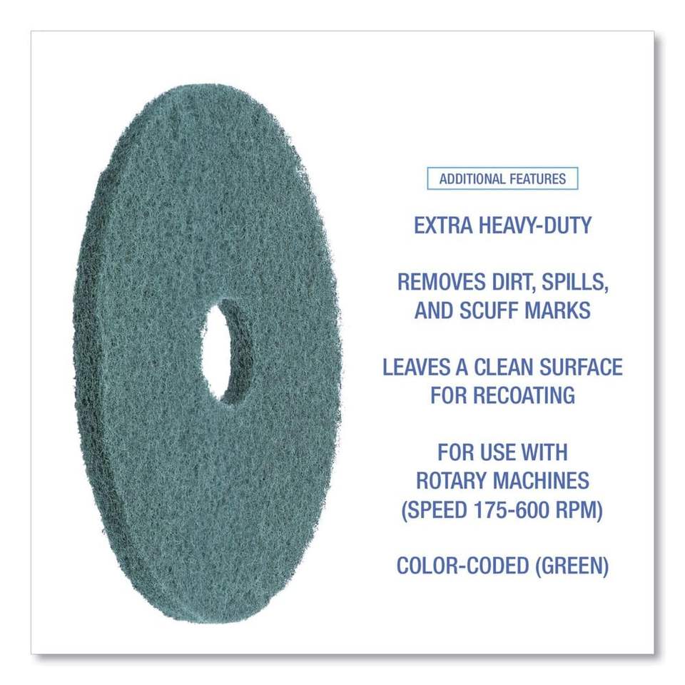 Boardwalk BWK4016GRE Heavy-Duty Scrubbing Floor Pads 16-Inch Diameter Green (5/Carton)