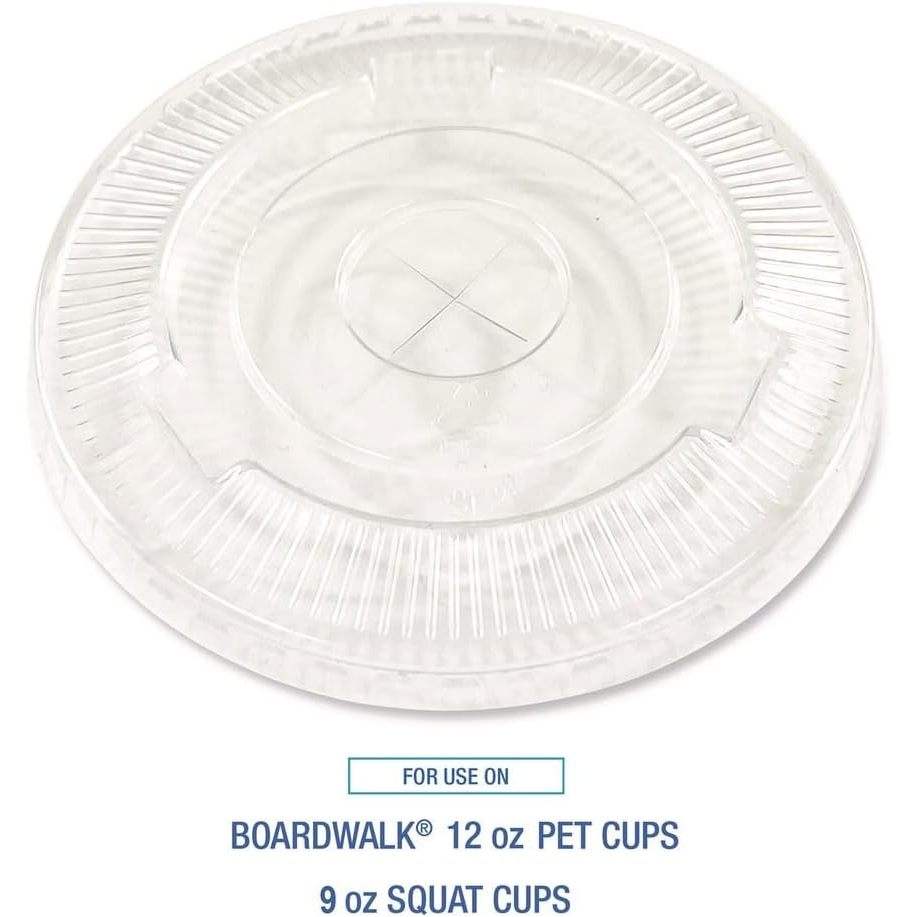 Boardwalk BWKPET910STRAWPK Disposable Lids 9 Oz. to 10 Oz. Crystal-Clear Cold Cup with Straw-Slot Packaged Clear (100/Pack)