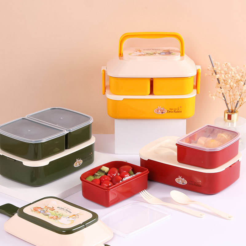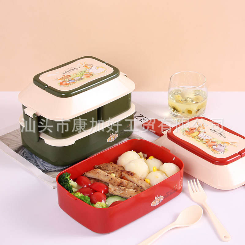 Bobby Rabbit Double Layer Bento Box Rectangle Plastic Lid Cartoon Design Microwave Safe For Adults Lunch Box