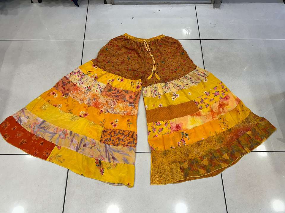 Bohemian 7 Layer Silk Palazzo Pant Unique Bridesmaid Wide Leg Trouser for Women Summer Patchwork Design