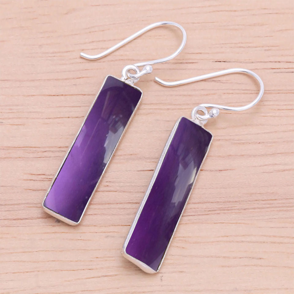 Top Selling Bohemian Fine Ethnic Dangle Earrings 925 Solid Sterling Silver Baguette Shape Amethyst Gemstone Pure 925 Sterling