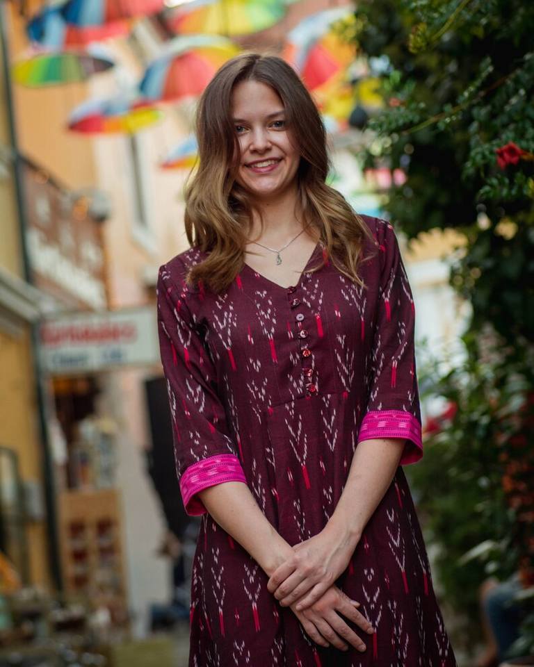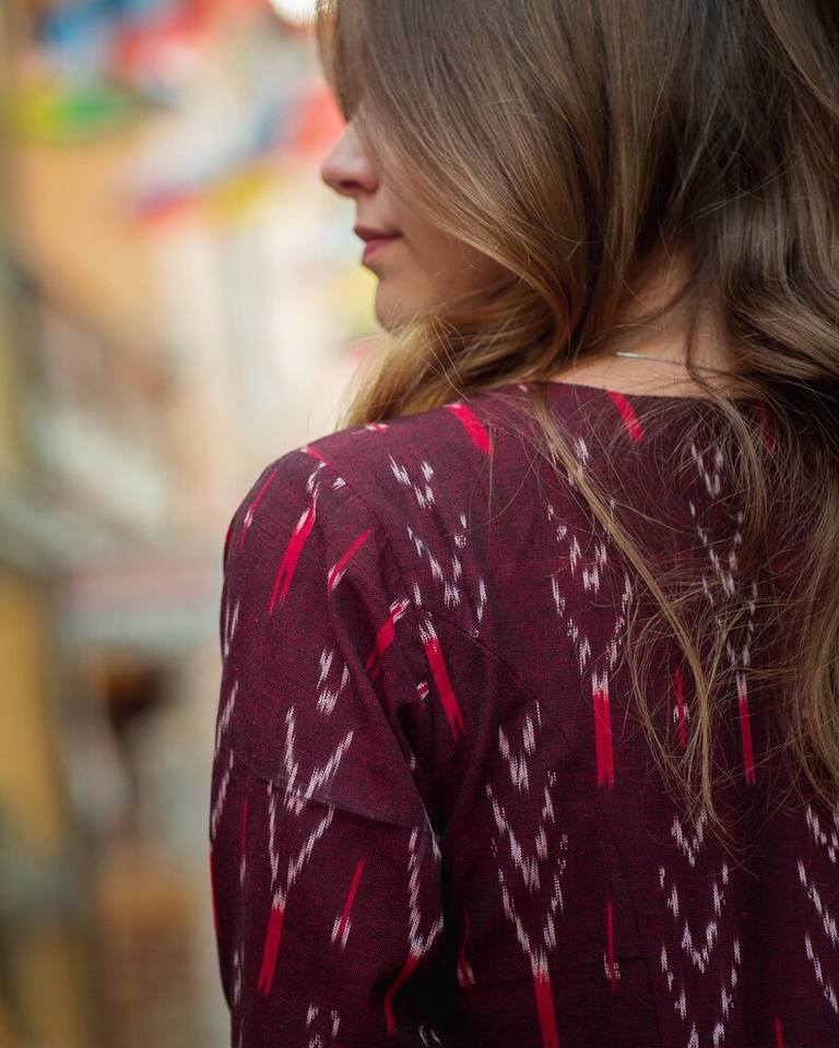 Bohemian Amelia Dress Calf Length Ikat Hand Loom Pure Cotton Casual Occasional Wear
