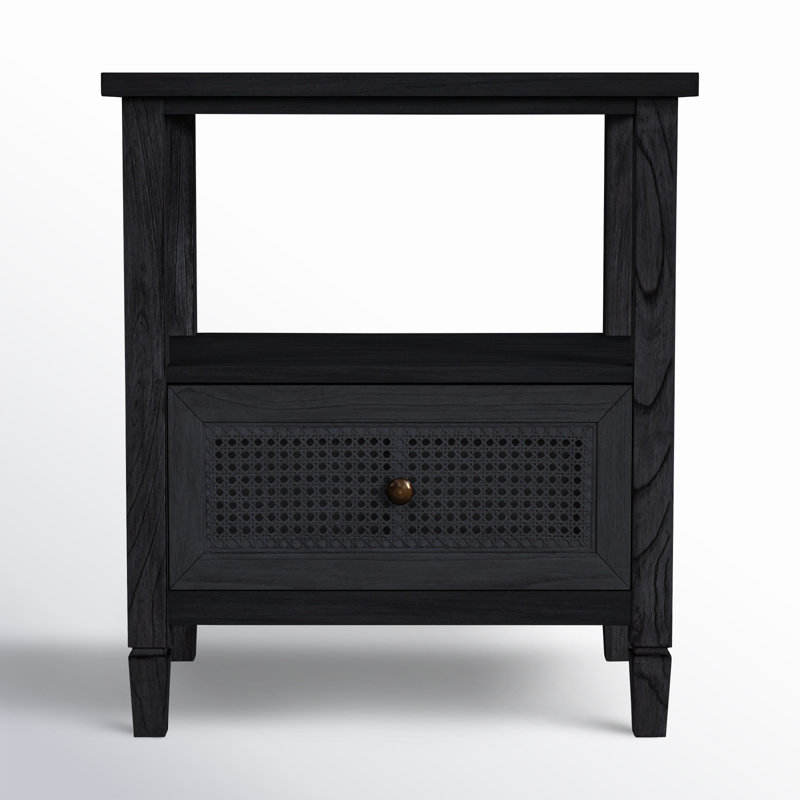 Bohemian Coastal Bedroom Storage Nightstand with 1 Drawer Bedside Table Made of Cane