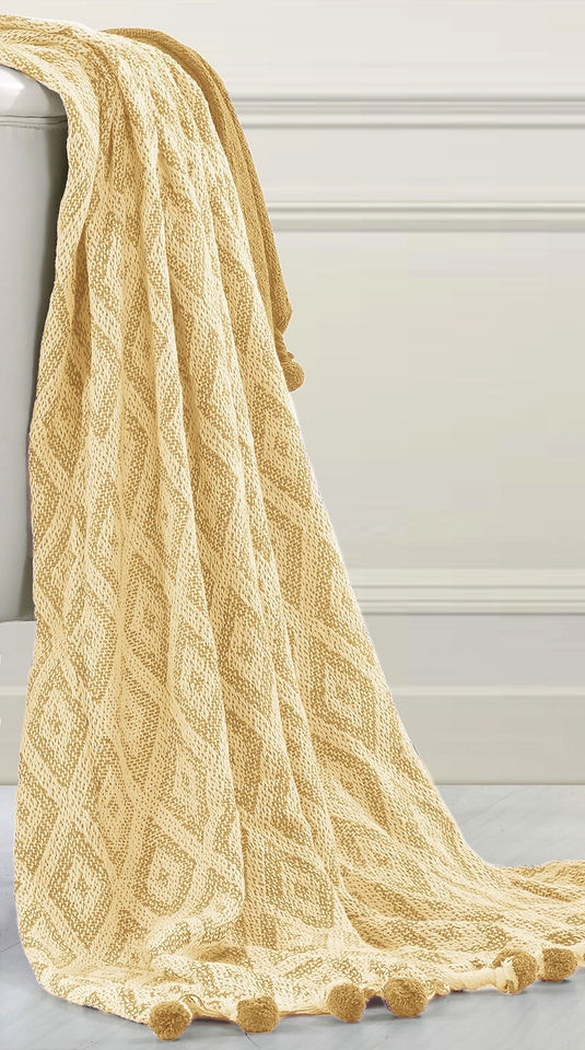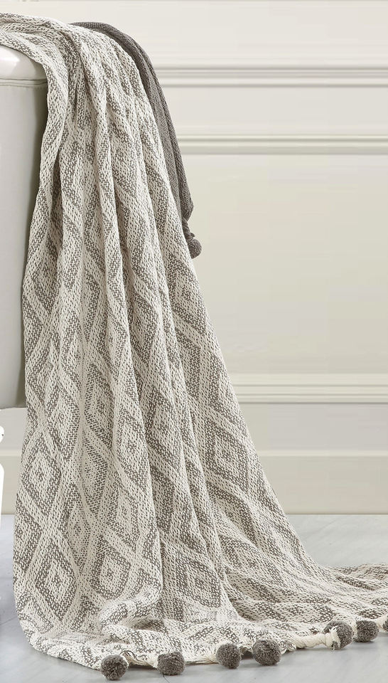 Bohemian Decorative Handmade Pom-pom Blanket Wholesale Woven Throw Blanket From India Super Luxurious White Cotton Blanket