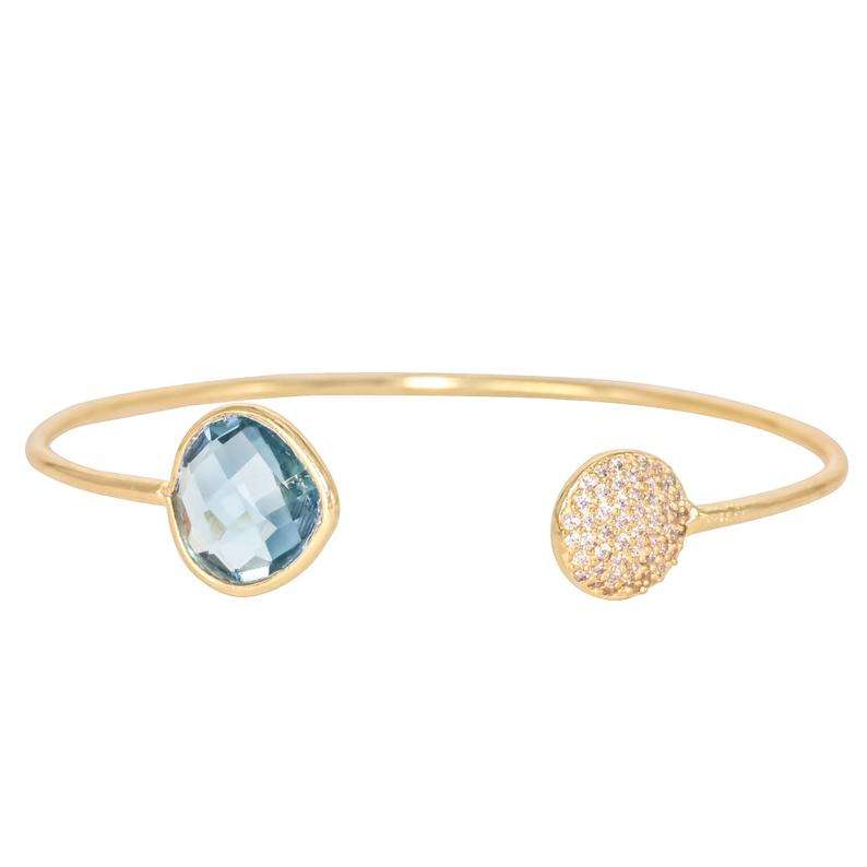 Bohemian Dream Gold Bangle Bracelet with Light Blue Gemstone and Round Diamonds