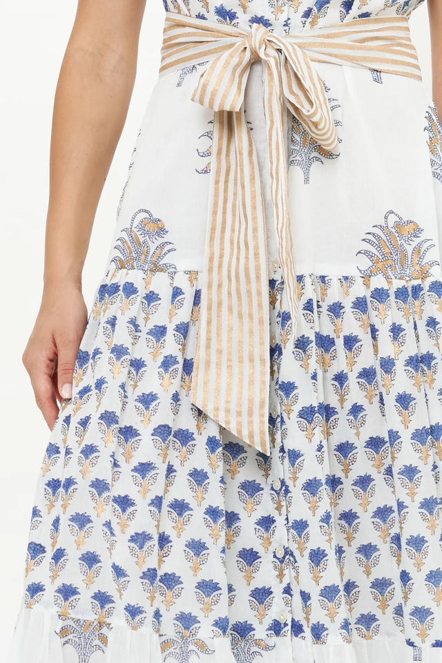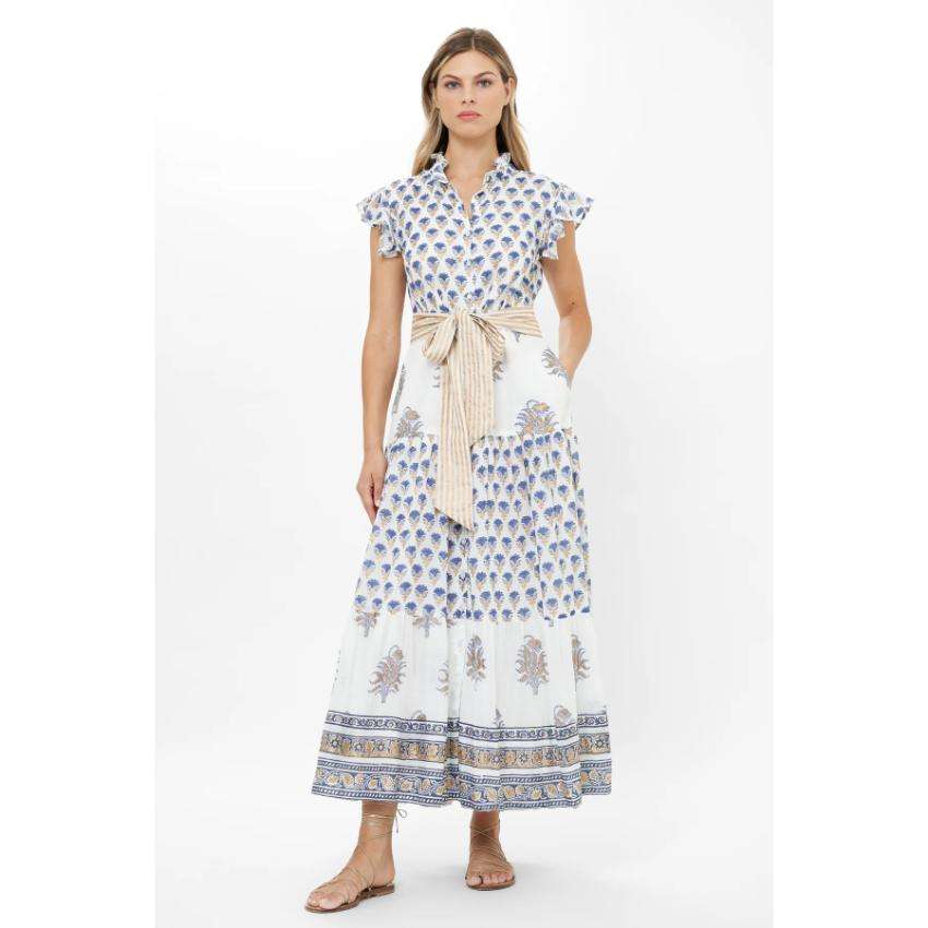 Bohemian Floral Long Women Printed Cotton Maxi Dress With Belt Boho Floral Full Length Summer Resort Wear Women Dress