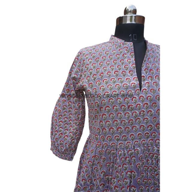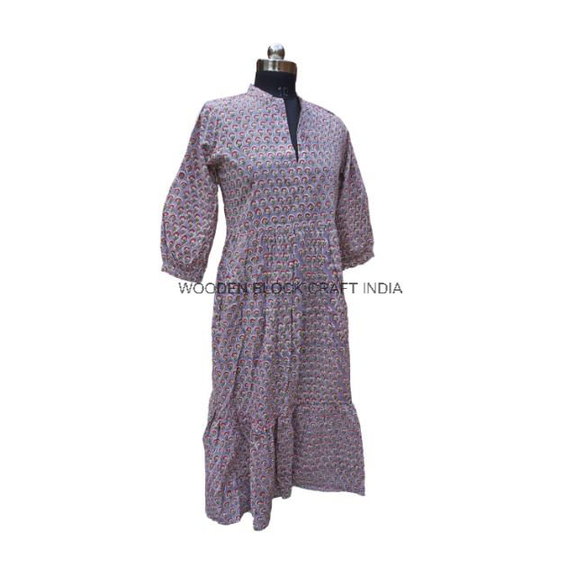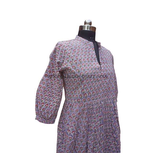 Bohemian Floral Print Cotton Midi Dress Soft Party Wear Sleepwear Wrap Design Natural Organic 3/4 Plus Size Women's Dress
