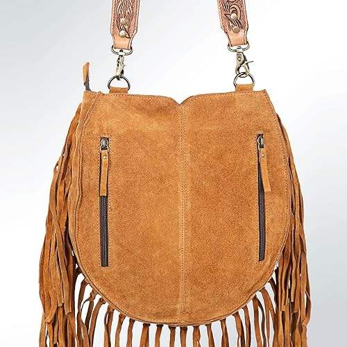 Cowhide Leather Crossbody Purse Western Women Bag With Fringes Genuine Suede Leather Real Hair on Cow Hide Purse