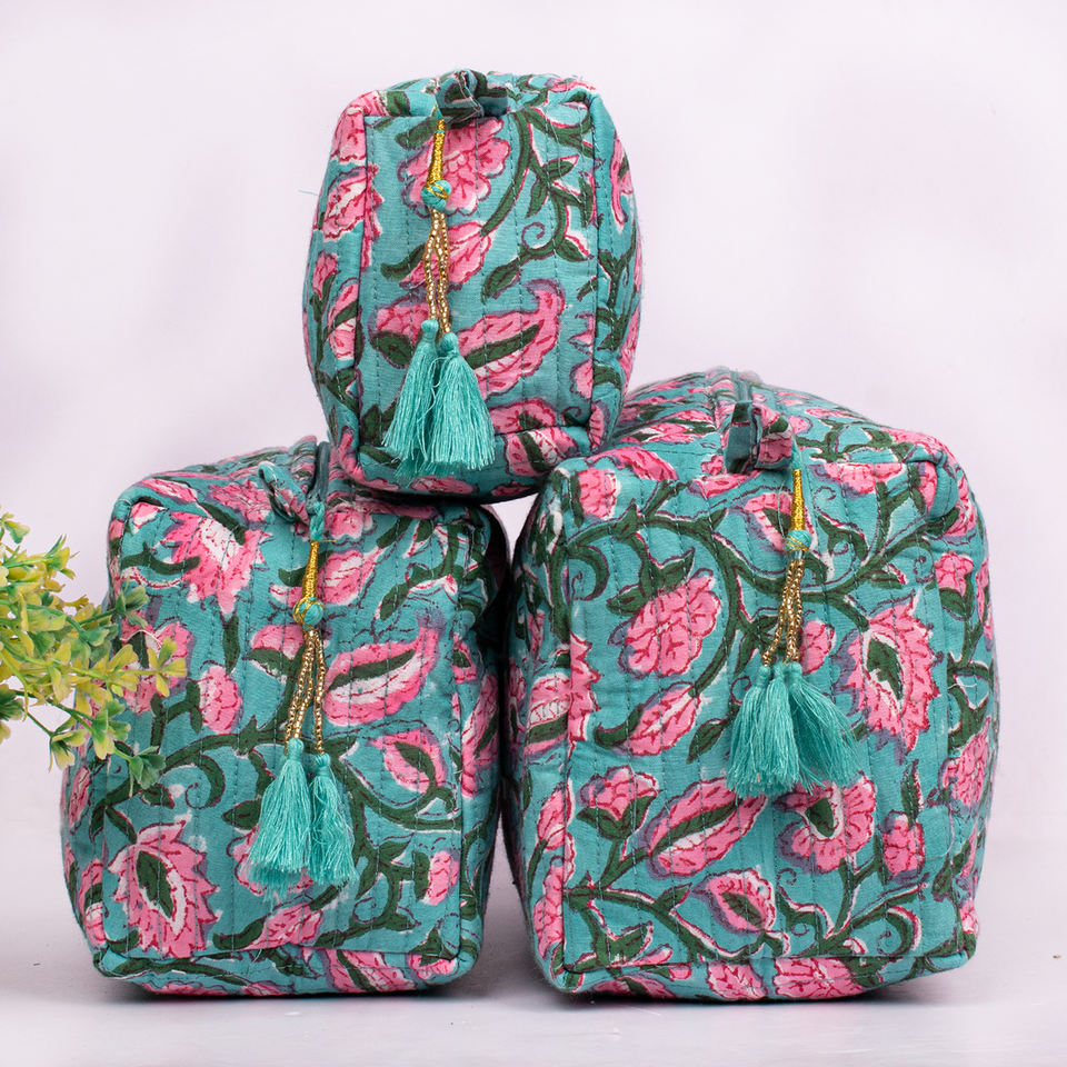 Bohemian Handmade Eco-Friendly Cotton Toiletries Bag Zipper Closure Large Capacity Lightweight Cosmetic Pouch Fashionable Prints