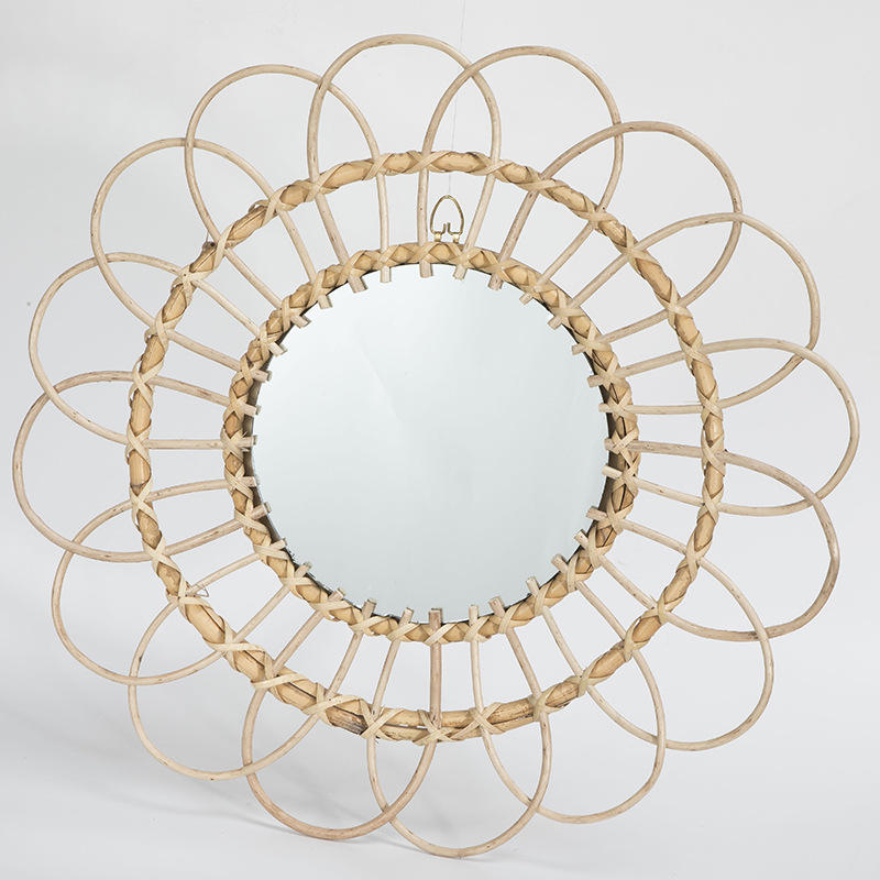 Bohemian Handwoven Seagrass Basket Decorative Hanging Art Mirror Home Wall Living Room Entrance Decoration