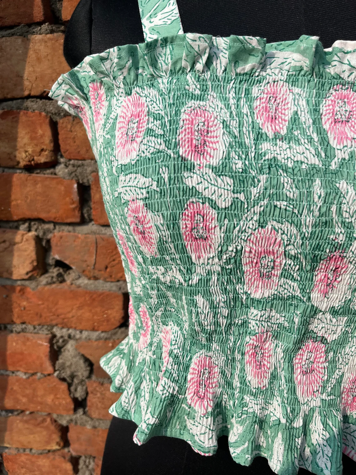 Bohemian Hippie Long Dress Hand Block Printed Cotton Floral Top Tunic with Square Collar & Embroidery for Outwear
