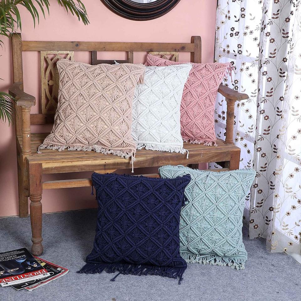 Bohemian Home Decorative Hand Woven Macrame Pillow Case Home Decor Handmade Macrame Cushion Cover From India